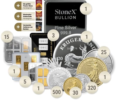 Das Paket besteht aus einer Vielzahl von Edelmetallen in unterschiedlichen Stückelungen und Verpackungen. Diese Diversität gewährleistet nicht nur Flexibilität, sondern auch höchste Sicherheit in Krisenzeiten.