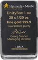 - 1 x20 x 1/20 Unze Goldbarren Heimerle und Meule Unity Box