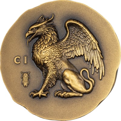 Die Rückseite der Münze ist geziert von einem detailreichen Greifen, der als Wächter des Schatzes und Symbol der Macht gilt. Dieses beeindruckende Relief wird durch die High Relief Prägung noch verstärkt, sodass der Greif fast lebendig wirkt und aus der Münze hervorzutreten scheint. Die Vorderseite zeigt das Porträt Seiner Majestät König Karl III, umringt von den Inschriften "CHARLES III", "COOK ISLANDS", "2024", "250 DOLLARS" und "1oz Au .9999", die die Herkunft, das Prägejahr, den Nennwert sowie das Gewicht und die Feinheit des Golds bestätigen.