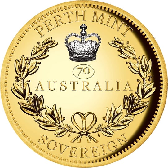 Diese Sovereign-Goldmünze wurde 2022 zu Ehren der britischen Queen Elizabeth II von dem australischen Hersteller Perth Mint gefertigt, denn diese wurde vor 70 Jahren zur Königin gekrönt. Deshalb ist die Münze auch mit der Zahl 70 geprägt.