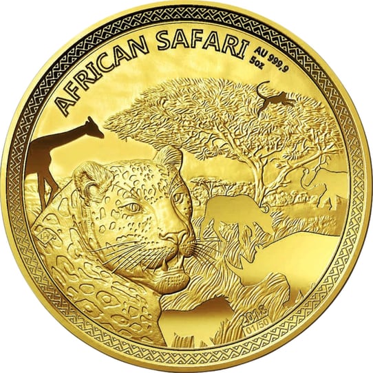 Der majestätische Leopard, eingebettet in die Weiten der afrikanischen Savanne, ist das Aushängeschild dieser streng limitierten 5 Unzen Goldmünze. Die detaillierte Darstellung des Leoparden, umgeben von angedeuteten Wildtieren, die auf die Vielfalt der Serie hinweisen, ist ein Meisterwerk der Münzprägung. Die Aufschrift "AFRICAN SAFARI" - "AU 999,9" - "5oz" - "2018" sowie die individuelle Seriennummer verleihen der Münze eine exklusive Note und bestätigen die Authentizität und Limitierung dieses Sammlerstücks.