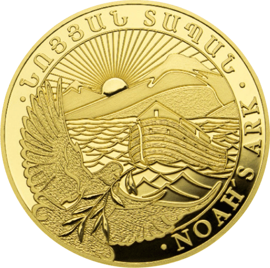 • Motiv: Die Münze zeigt eine eindrucksvolle Darstellung der Arche Noah und der Friedenstaube mit dem Ölzweig im Schnabel