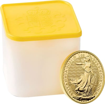 Exklusives Design: Hochwertige Prägung mit ikonischem Britannia-Motiv, geliefert in robuster Münztube