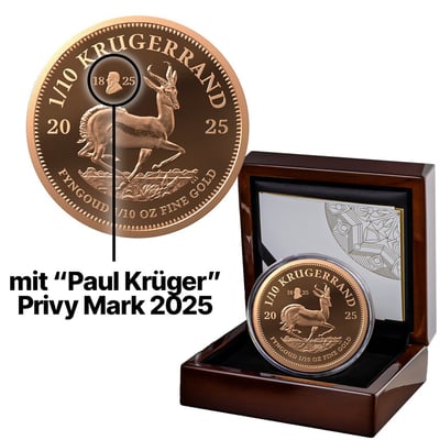 Exklusive Rarität: 1/10 Unze Gold Krügerrand 2025 mit Paul Kruger Privy Mark
