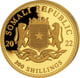 Das Wappen Somalias ziert die Rückseite der Münze. Dieses besteht aus einem weißen, fünfzackigen Stern auf einem himmelblauen Hintergrund. Gehalten wird das Wappen von zwei Leoparden, die mit einem Bein auf sich zwei kreuzenden Speeren stehen. Zwei Palmzweige, die Frieden symbolisieren, stehen im starken Kontrast zu den Waffen.