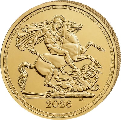 • Motiv: Vorderseite zeigt das ikonische St. Georg-Motiv von Benedetto Pistrucci, Rückseite das Porträt von King Charles III.