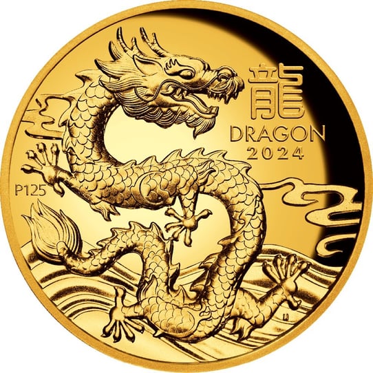 Exquisite Goldprägung: 1 Unze Gold Lunar III Drache 2024 HR