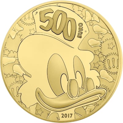 Die 5 Unze Gold Dagobert Duck 2017 PP wurde von der renommierten Prägestätte Monnaie de Paris, einer der ältesten Münzprägeanstalten der Welt, in Frankreich hergestellt.