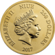 Die Rückseite der 1 Unze Gold Niue Steamboat Willie Münze 2017 zeigt das Staatsoberhaupt Großbritanniens, die Queen Elisabeth II. Die 1oz Niue Steamboat Willie 2017 gehört mit ihrem attraktiven Motiv aus der Walt Disney Serie zu den schönsten Anlagemünzen der Welt und ist auch bei Sammlern sehr beliebt.