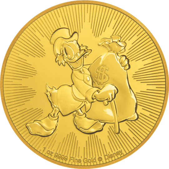 Die Goldmünze „Dagobert Duck 2018“ wird als Nachfolger des Steamboat Willy ausgegeben. Im Wesentlichen hat sich nur das Motiv der Comicfigur geändert. Die Disney Dagobert Duck Goldmünze ist die 31,10 Gramm schwere Goldmünze der New Zealnd Mint/Sunshine Mint, die es als Limited Edition in Gedenken an Dagobert Duck von Walt Disney gibt. Die Zeichentrickfigur „Dagobert Duck“ hat sich über die Jahre zu einem der beliebtesten Charakter der Disney Serie entwickelt. Die Comic-Figur „Steamboat Willie“ war die Vorläuferfigur der des sehr beliebten Motivs dieser Anlagemünze.