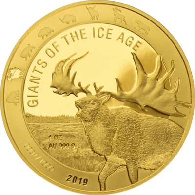 1 Unze Gold Giganten der Eiszeit - Riesenhirsch 2019 (Auflage: 1.000 | Polierte Platte)