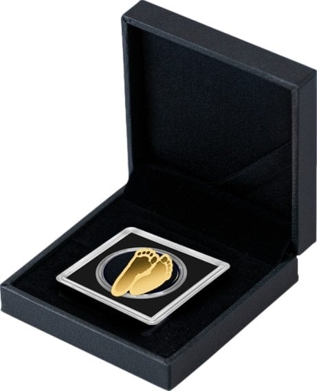 Das herausragende Merkmal dieser Münze ist das liebevoll gestaltete Motiv auf der Rückseite: Zwei süße Babyfüße, die detailgetreu und mit viel Hingabe geprägt wurden. Dieses Motiv steht sinnbildlich für den Beginn eines neuen Lebens und die zarten ersten Schritte eines Neugeborenen.