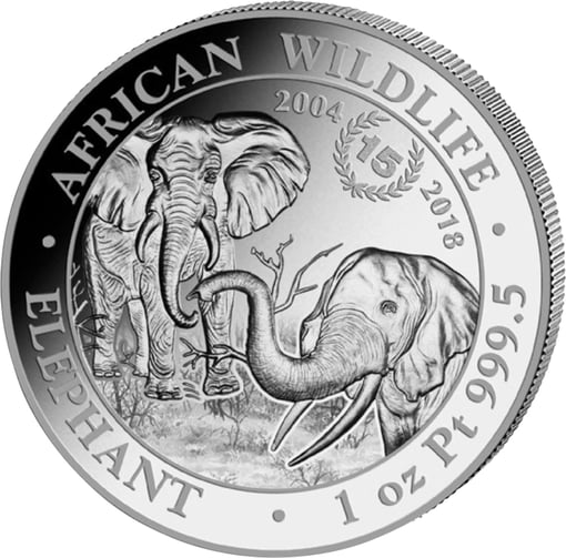 1 Unze Platin Somalia Elefant 2004-2018 (Jubiläumsausgabe: 15 Jahre | Auflage: 1.500)