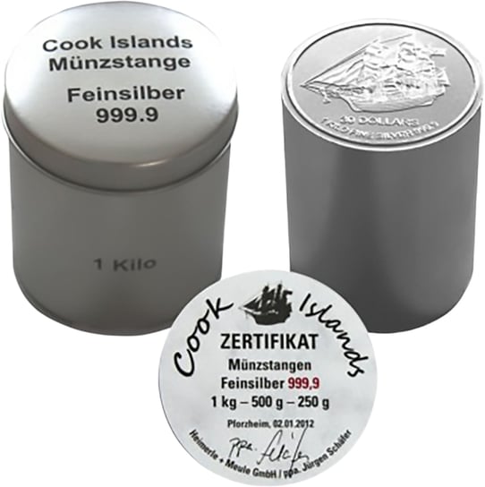 Die 1 kg Cook Islands Münzstange (in Dose) ist ein Produkt vom Typ Silber Münzbarren, das aus reinstem 999,9/1.000 Silber besteht. Mit einem Gewicht von 1.000,00 g ist es eine stattliche Ergänzung für Ihre Sammlung und eine solide Investition. Die Münzstange kommt in einem eleganten Etui daher und ist ein Produkt in prägefrischem Zustand.