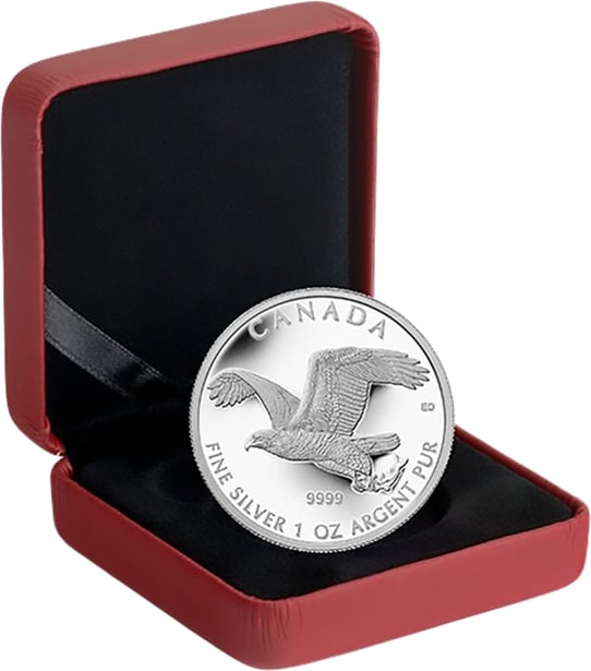 Als erstes Motiv der Birds of Prey Serie 2014 war der Wanderfalke auserwählt worden und startete explosionsartig als absoluter Verkaufsschlager. Daher gehen wir beim Weißkopfseeadler von ähnlich, hohen Verkaufsmengen ab. Im Jahr 2015 werden die letzten beiden “Birds of Prey 2015”-Motive erscheinen und damit endet dann auch die Vogelmotiv-Serie. Die Feinheit ist mit 999,9/1000 beziffert. In der Prägung als “Proof”-Variante oder zu deutsch “Polierte Platte” für Sammler herausgegeben, deren maximale Auflage sich auf nur 7.500 Stück beläuft. Der Nennwert der Silbermünze liegt bei 5 CAD (kanadische Dollar). Die Münze wird in einer edlen Schatulle inklusive Münzkapsel und einem Echtheitszertifikat ausgeliefert