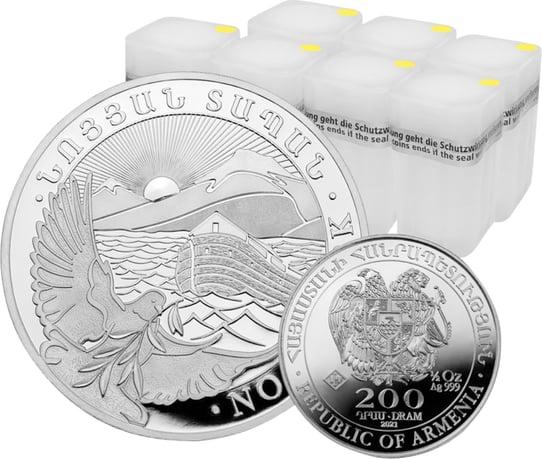 Die Vorderseite zeigt die Arche Noah, wie sie gerade vor dem armenischen Berg Ararat zu sehen ist. Die Sonne scheint und das Meer ist zum Ende der Sintflut endlich ruhig geworden. Auf der linken Seite des Münzmotivs fliegt die Taube heran und steht mit ihrem Olivenzweig für den Neuanfang. Auf der Münzseite ist der Schriftzug „NOAH’S ARK“ zu sehen. Was die Rückseite angeht, sind dort das Wappen Armeniens, der Nennwert von 200 Dram, sowie die Feinheit von 999/1.000 zu sehen. Als Schriftzug wird „REPUBLIC OF ARMENIA“ verwendet.