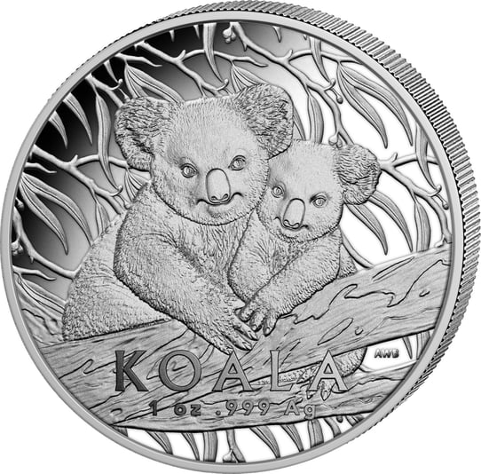 Meisterhafte High Relief Prägung: Die beeindruckende Tiefenwirkung und höchste Prägequalität Polierte Platte verleihen dem Koala-Motiv eine faszinierende dreidimensionale Brillanz