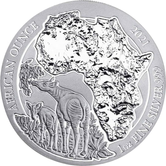 Die Silbermünze ist Teil der Ruanda-Serie, die bekannt ist für ihre jährlich wechselnden Tiermotive. Die 2021er Ausgabe zeigt ein Okapi, ein exotisches und seltenes Tier, das in den Regenwäldern Zentralafrikas beheimatet ist. Die detailreiche Darstellung des Okapis neben einer topographischen Karte Afrikas unterstreicht die Einzigartigkeit dieser Münze.