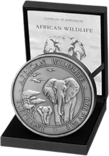 Der Somalia Elefant der “African Wildlife”-Serie wird seit dem Prägejahr 1999 hergestellt. Nachdem die Münze bis 2003 noch unter der Flagge von Sambia erschienen war, zeichnete seit 2004 Somalia als Herkunftsland verantwortlich und durfte auch die Wertseite neu gestalten. Dadurch erscheint die Münze auch mit einem Nennwert in Shillings.