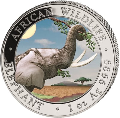 1 Unze Silber Somalia Elefant 2023 Tag Design (Auflage: 5.000 | coloriert)