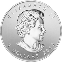 Ebenfalls textlich vermerkt sind am oberen Münzrand das Prägeland „Canada“, unten findet sich mit dem Schriftzug „Fine Silver 1 oz argent pur“ der Hinweis auf das Edelmaterial – „argentum“ ist die lateinische Vokabel für „Silber“ – sowie das Feingewicht von einer Unze bzw. 31,1 Gramm. Direkt im Bild ist der Feingehalt von 9999 eingeprägt.
