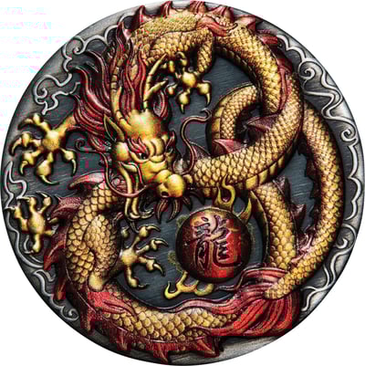 2 Unze Silber Drache 2020 (Auflage: 888 | coloriert | Antik Finish)