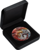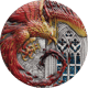 Die Motivseite dieser Silbermünze zeigt einen Phönix. Ein Phönix ist ein magisches Fabelwesen, das einem großen Vogel ähnelt. Durch die Kolorierung kommt die Farbe des Phönix prima zur Geltung. Das Gefieder eines Phönix ist meistens gelb und rot. Phönix sieht durchaus gefährlich aus mit seinem leicht geöffneten Schnabel und seinen scharfen Krallen.