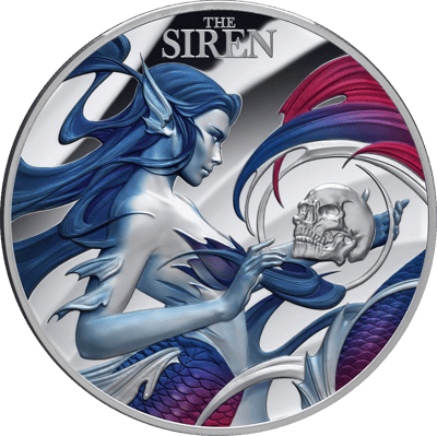 2 Unze Silber Mythische Kreaturen Die Sirene 2023 PP (Auflag: 750 | coloriert | High Relief | Polierte Platte)