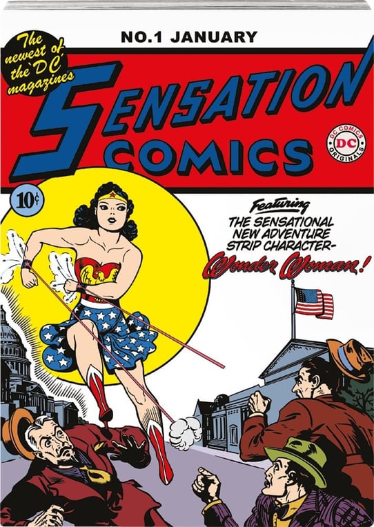 • Motiv: Detaillierte Nachbildung des Sensation Comics #1 Covers in Farbe