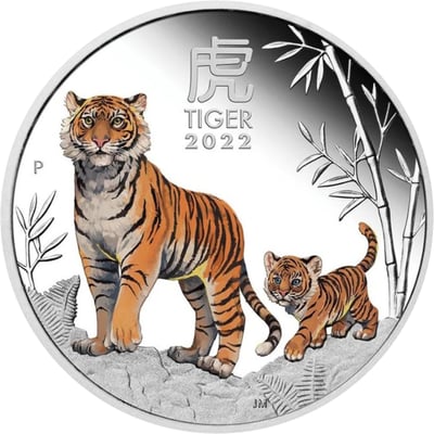 1 Unze Silber Lunar III Tiger 2022 Tiger (Auflage: 6.000 | coloriert | Polierte Platte)