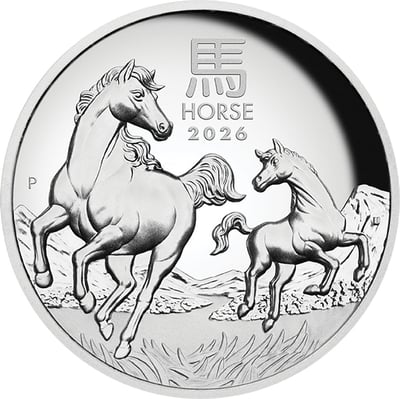 1 Unze Silber Lunar III Pferd 2026 (Auflage: 3.888 | High Relief | Polierte Platte)