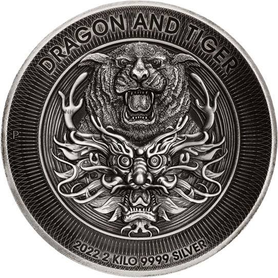 2kg Silber Drache & Tiger 2022 (Auflage: 200 | Antik Finish | High Relief | inkl. Etui)