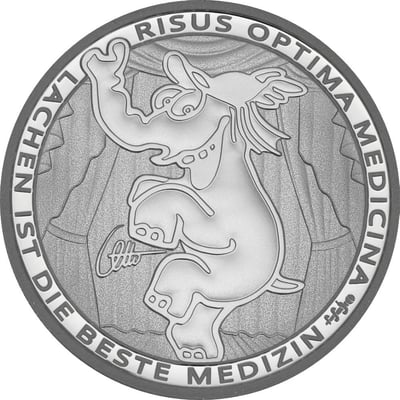 Der bekannte deutsche Komiker Otto Waalkes erlebt durch den ausgedachten „Ottifant“ eine echte Erfolgsgeschichte und steht seitdem als wichtiges Maskottchen und Markenzeichen für die Arbeit des deutschen Musikers, Schauspielers und Comiczeichners. Der lustige Ottifant ziert viele Fanartikel, Briefmarken und nun auch diese exklusive Münze in unserem Sortiment! Diese exklusive Münze aus Tuvalu zeigt den kräftigen Ottifanten vor einem Bühnenvorhang. Sie trägt die erstklassige Signatur des Künstlers, der sie selbst gestaltet hat. Otto Waalkes lässt seine unnachahmliche Bühnengestik und Mimik im Comic-Elefanten aufleben und greift sein Motto auf: „Lachen ist die beste Medizin“!