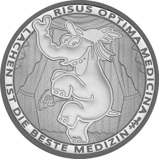 Auf der schönen Motivseite der Silbermünze ist ein süßer, lachender Ottifant in seiner typischen Otto-Pose („Funnyfant“) abgebildet. Der Hintergrund der Münze stellt eine schöne Bühnenszenerie mit Vorhängen dar. Oberhalb des Ottifanten ist der lateinische Spruch „Risus Optima Medicina“ – Lachen ist die beste Medizin zu sehen und unterhalb die deutsche Version „Lachen ist die beste Medizin“. Die Rückseite zeigt das Porträt von Königin Elizabeth II und die Inschriften „1 DOLLAR“, „ELIZABETH II“, Jahreszahl, das Gewicht, den Nennwert und die Feinheit der Münze.