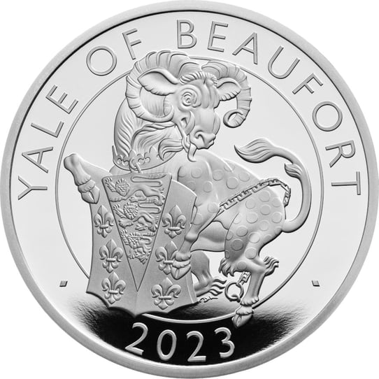 Das Yale of Beaufort sieht aufgrund seiner Hörner auf den ersten Blick aus wie ein Widder. Doch sein Fell ist mit vielen großen Punkten versehen, die bei einem gewöhnlichen Widder nicht vorkommen. Auch sein Schwanz sieht komplett anders aus als der eines Widders. In seinen Vorderhufen befindet sich ein Schild, auf dem das Wappen des Adelsgeschlechts Beaufort gedruckt ist. Darunter steht das Prägejahr der Münze. Dieses lautet 2023.