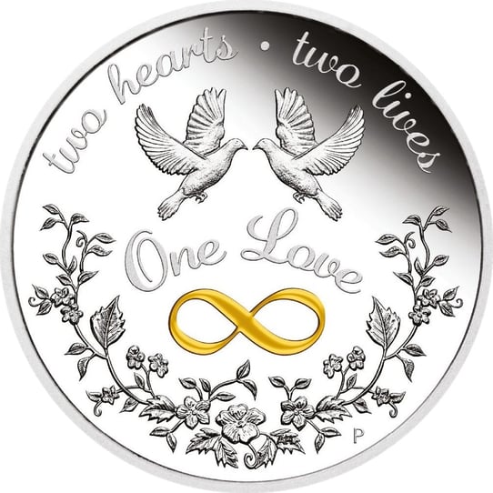 Die 2023er One Love Münze wurde von der hervorragenden Perth Mint Prägestätte aus einer hochwertigen 1 Unze reinem Silber mit einer Feinheit von 999,9% geprägt. Das atemberaubende Design auf der Motivseite zeigt zwei wunderschöne Tauben, die sich in inniger Zweisamkeit umschlingen. Ein goldenes Unendlichkeitssymbol, das für die ewige Liebe steht, sowie ein kunstvolles Muster aus Blumen und Blättern ergänzen das romantische Motiv. Darüber hinaus sind die Inschriften „Two Hearts“, „Two Lives“ und „One Love“ sowie das traditionelle Münzzeichen „P“ der Perth Mint in das Design der Münze eingearbeitet. Die Rückseite ziert das Porträt von Königin Elizabeth II., das vom bekannten Münzdesigner Jody Clark gestaltet wurde. Die Angaben zur Feinheit, zum Ausgabejahr und zum Nennwert sind ebenfalls auf der Rückseite zu finden.