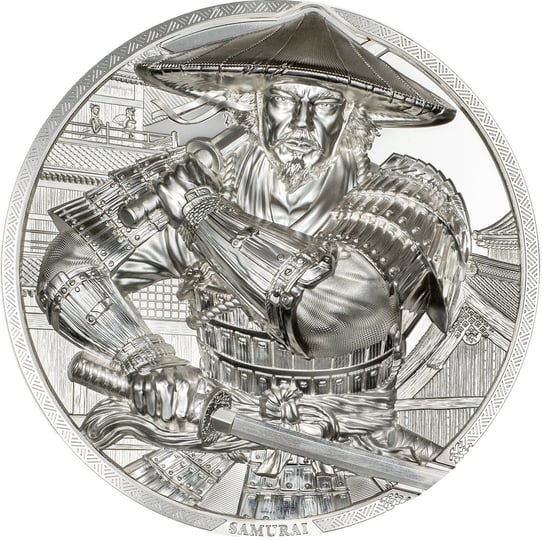 • 5 Unzen reinstes Silber in spektakulärer High Relief Prägung mit detailreichem Samurai-Motiv