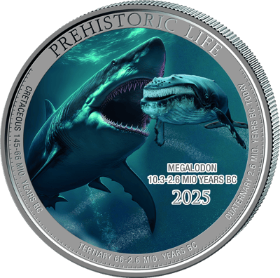 1 Unze Silber Prehistoric Life Megalodon 2025 (Auflage: 2.000)