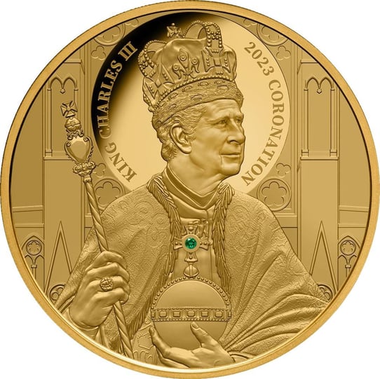 1 Unze Gold Krönung King Charles III. 2023 PP (Auflage: 150 | Polierte Platte | mit echtem Smaragd)