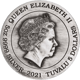 - Rückseite: Die Queen und der Nennwert von 5$, der Jahrgang 2021 und die Unzen-Größe „5OZ“