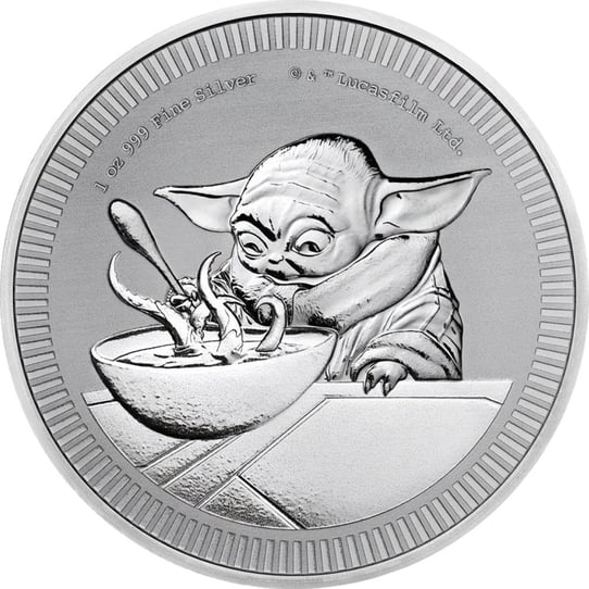 Die Münze wurde von der renommierten New Zealand Mint geprägt und zeichnet sich durch höchste Qualität und Detailtreue aus. Sie besteht aus reinem Silber mit einer Feinheit von 999/1.000. Das Münzmotiv zeigt Grogu, wie er versucht, eine Suppe zu essen, aus der lebendige Tentakel hervorragen. Seine großen Augen sind weit geöffnet und eine Hand greift erwartungsvoll einen Löffel.