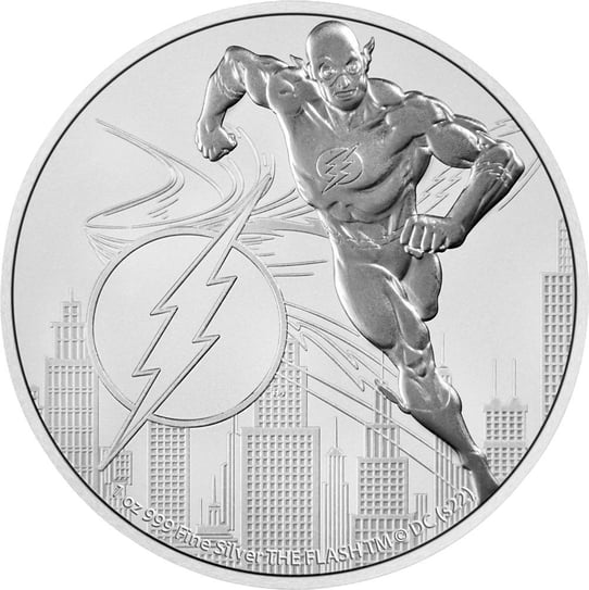 Die Silbermünze selbst ist ein Kunstwerk. Auf der Vorderseite der Münze befindet sich das stilisierte Bild von The Flash™, wie er in voller Geschwindigkeit durch die Straßen von Central City rennt. Der Name „The Flash“ ist in fettgedruckten Lettern oberhalb des Bildes eingeprägt, während die Worte „1 Unze 999 Feinsilber“ und das Jahr der Ausgabe unterhalb des Bildes zu sehen sind.