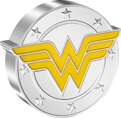 1 Unze Silbermünze Wonder Woman Logo 2022 PP (Auflage: 5.000 | coloriert | Polierte Platte)