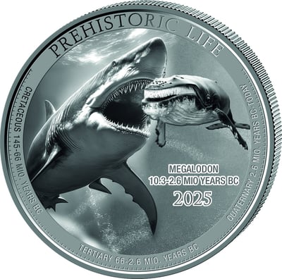 1 Unze Silber Prehistoric Life Megalodon 2025 (Auflage: 10.000)