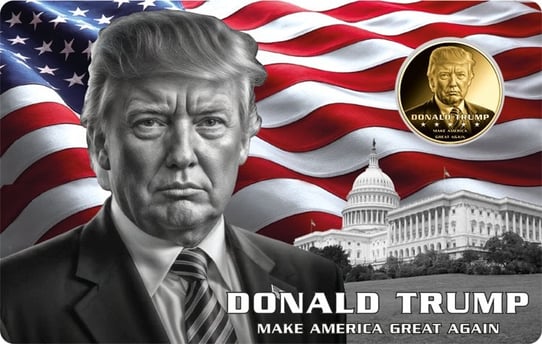Das Motiv der Münze ist einzigartig und zeigt das Portrait von Donald Trump mit der Aufschrift "Donald Trump" und seinem Wahlkampfslogan "Make America Great Again". Die Münze ist in eine Blisterkarte eingefasst, die ebenfalls Donald Trump vor einer amerikanischen Flagge und dem Weißen Haus im Hintergrund zeigt. Dieses detailreiche Design macht die Münze zu einem echten Hingucker.