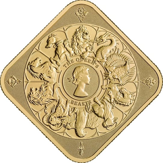 - Motiv: Einzigartiges Design mit allen zehn Queen's Beasts und dem ersten offiziellen Münzporträt von Elizabeth II.