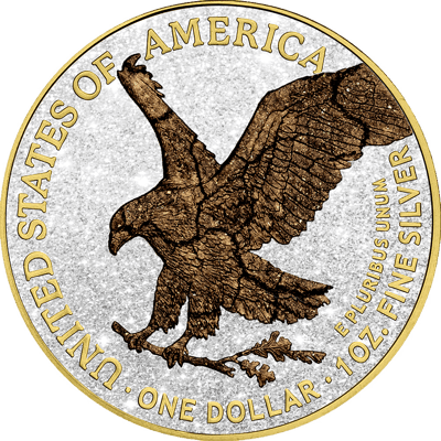 1 Unze Silber American Eagle 2024 Typ II 5 Elemente Erde Iced Out (Auflage: 50 | teilvergoldet | coloriert)
