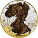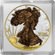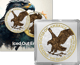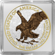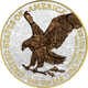 Die Veredelung der American Eagle Silbermünze ist ein Meisterwerk handwerklicher Kunst. Auf der Vorderseite präsentiert sich der kraftvolle Weißkopfseeadler in voller Pracht, koloriert und umgeben von einem schwarzen Hintergrund, der die Details des Motivs hervorhebt. Die Aufschrift "UNITED STATES OF AMERICA - ONE DOLAR - 1OZ. FINE SILVER" wurde mit größter Sorgfalt teilvergoldet, was der Münze einen zusätzlichen Hauch von Eleganz verleiht.
