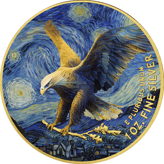Entdecken Sie den Silber Eagle 2024 Van Gogh – Ein Kunstwerk aus reinem Silber