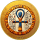 Das Motiv der Münze zeigt das ikonische Sonnenauge, ein Symbol, das tief in der ägyptischen Mythologie verwurzelt ist. Umgeben von prachtvollen Farben und Details, strahlt das Sonnenauge eine mystische Aura aus, die jeden Betrachter in ihren Bann zieht. Der Schriftzug und die Feinheit sind kunstvoll vergoldet und verleihen der Münze eine zusätzliche Eleganz.